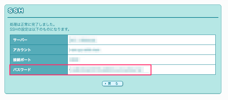 「ロリポップ!」のユーザー専用ページ(管理画面)から「サーバーの管理・設定」>「SSH」に表示される「パスワード」の情報を回答します。