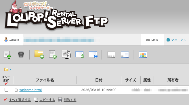 こちらはデプロイ前の「ロリポップ!FTP」の状態です。