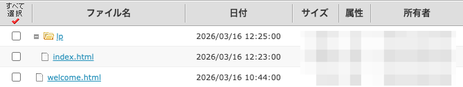 フォルダを作成せずドメイン直下にすることも可能ですが、ここでは「lp」というフォルダを指定しました。