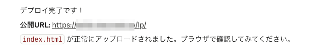 「デプロイ完了です」と表示されると、作成したサイトが閲覧できるようになっています。