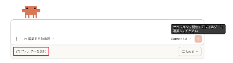 フォルダーを指定すると、Cloude codeに指示を伝えるマークが選択できるようになります。
