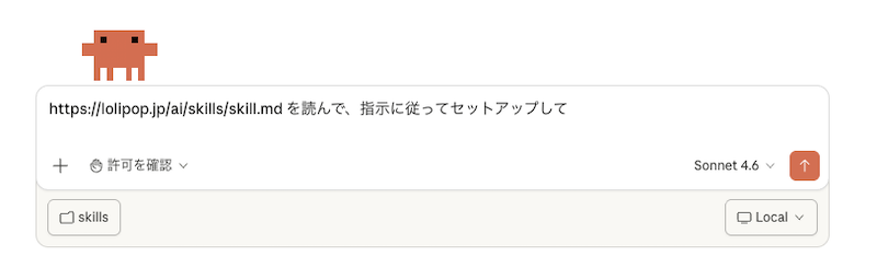 ロリポップ!レンタルサーバーの「AIエージェント Skills」を使うと、Claude Code、Cursor、Gemini CLIなどのAIコーディングエージェントにURLを送り「公開して」と伝えるだけで、AIがサイト作成からロリポップへのアップロードまでを全自動で完了します。