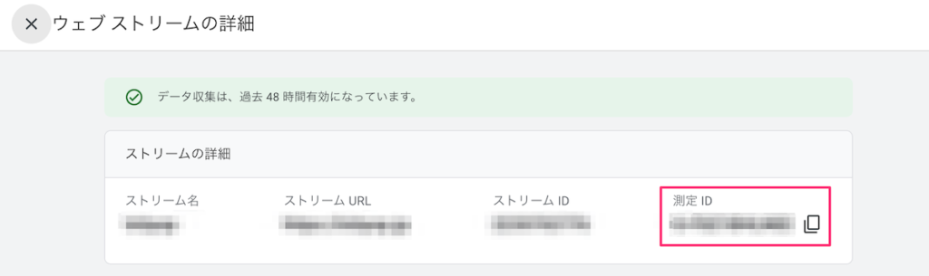 その測定IDをクリックするとコピーできます。もし複数のサイトを運営している場合は、間違えないようにサイト名を確認してからコピーしてください。